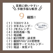 このツールセットには、ケアマネジメント業務でよく使用される12種類の帳票が含まれています。例えば、毎月の請求の際の加算のチェックに役立つシートや電話・来客メモなど、日々の業務で役立つ様々な帳票が揃っています。